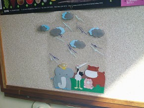 掲示板や廊下、教室に6月(梅雨)を感じる掲示がされていたので紹介します。