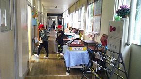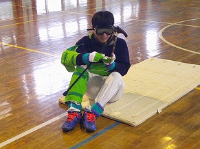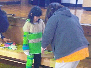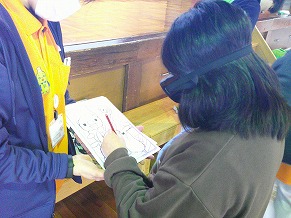 2月20日(金)に講義だけ受けていた4年生のために、27日(金)に、銚子市地域包括支援センターの方が、体験のために、再び来てくださいました。実際に体に重りをつけたり、見えにくいめがねを付けたりしました。また、車いす体験もしました。