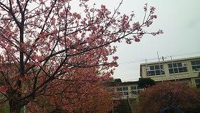 今年は、いつもより早く校庭の河津桜が満開になりました。濃いピンクの花がとてもきれいです。