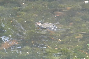 2月27日(金)、職員室前の観察池に、卵を産みにヒキガエルが集まってきました。50匹ぐらいいました。たくさん卵を産んでいきます。一週間ぐらいしかいません。