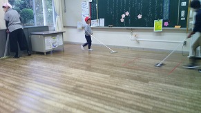 3月3日(火)、年度末の大掃除をしました。教室のものをすべて廊下に出して、ピカピカにしました。次の学年にきれいにした教室を受け渡します。