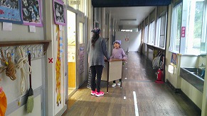 4月30日(水)、校長室にかわいらしいお客さんがきました。2年生が1年生を案内して、学校探検をしました。保健室や図書室などを探検してまわりました。