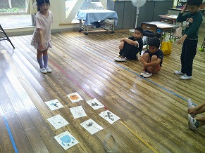 2つめは、「アートカードを使って、イエス・ノーゲーム」です。ゲームをとおして、ものをよく見るという体験をしました。