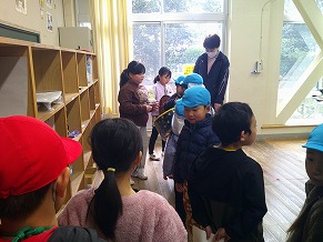 1月28日(水)、近くの第二保育所の年長さんが学校に遊びにきてくれました。校舎の案内や教室での過ごし方などを、2年生が中心となって教えていました。広いグラウンドで、鬼ごっこもしました。