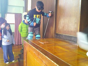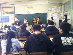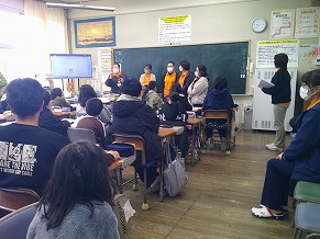 2月20日(金)、銚子市地域包括支援センターの皆さんが、認知症についての講話と体験活動を実施してくださいました。体におもりや見えにくいめがねを付けて体験することで、大変さを感じることができました。また、認知症の方には、ていねいにやさしく語りかけ、安心感を与えることが大切であることを学びました。
