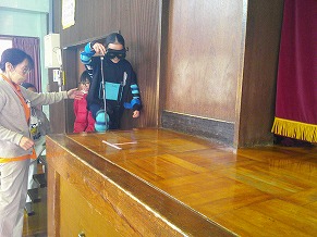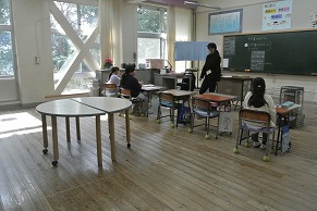 10月10日(金)、不審者対応避難訓練をしました。先生は、昇降口に、さす股をもって不審者を校内に入れないようにしました。子どもたちは、教室でバリケードを作り、静かに待つことができました。
