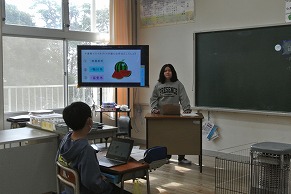 11月26日(水)全校体育でマット運動のまとめとして、発表会を行いました。できるようになった技をいくつか組み合わせて行いました。大技にチャレンジしている人もいました。「おー!!」と歓声をあげたり、拍手をしたりと盛り上がりました。