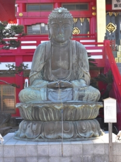 銅造阿弥陀如来坐像(どうぞうあみだにょらいざぞう)は、銚子市馬場町の飯沼観音境内に安置されており、「銚子大仏」の名で多くの人に親しまれています。鋳造青銅製(ちゅうどうせいどうせい)、座高305センチメートル、蓮華座高108センチメートルで、正徳元年(1711)に建立されました。