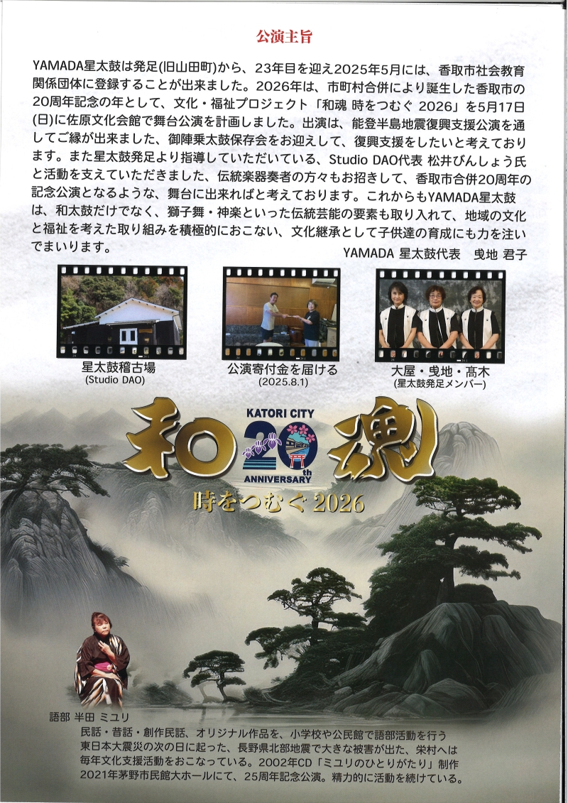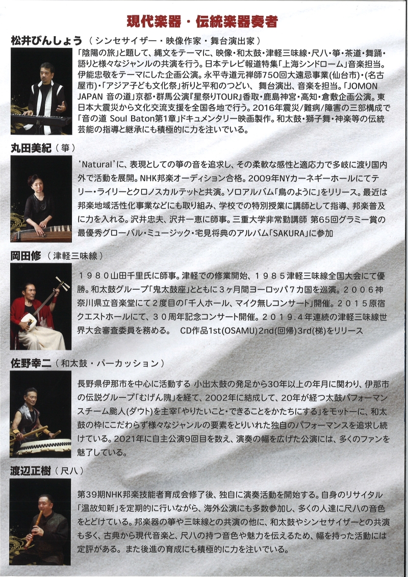 御陣乗太鼓保存会・伝統楽器奏者による演奏など