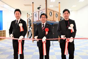「こどものあそびば」OPENセレモニーでテープカットをする市長の様子(2月13日・イオンモール銚子)