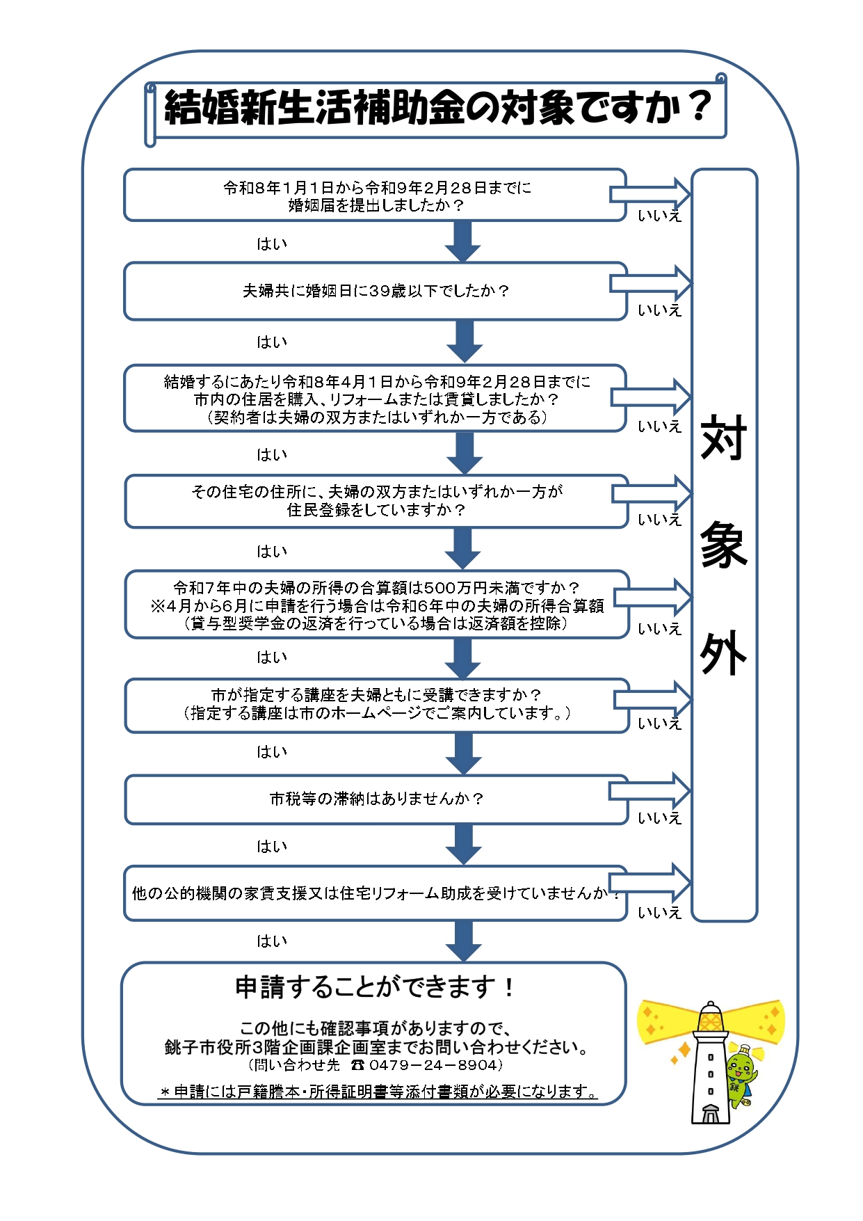 (注意) 【フラット35】地域連携型の利用対象となる場合でも、銚子市結婚新生活支援事業による補助金の交付を確約するものではありません。