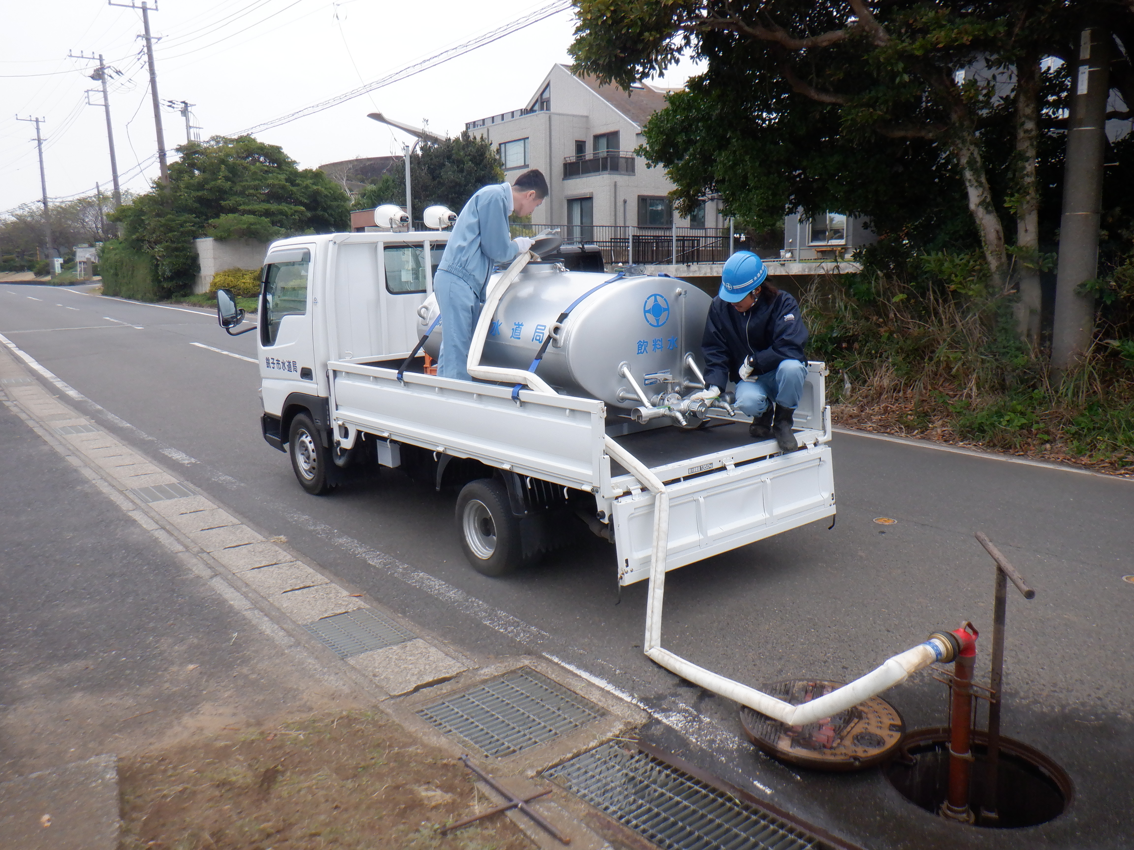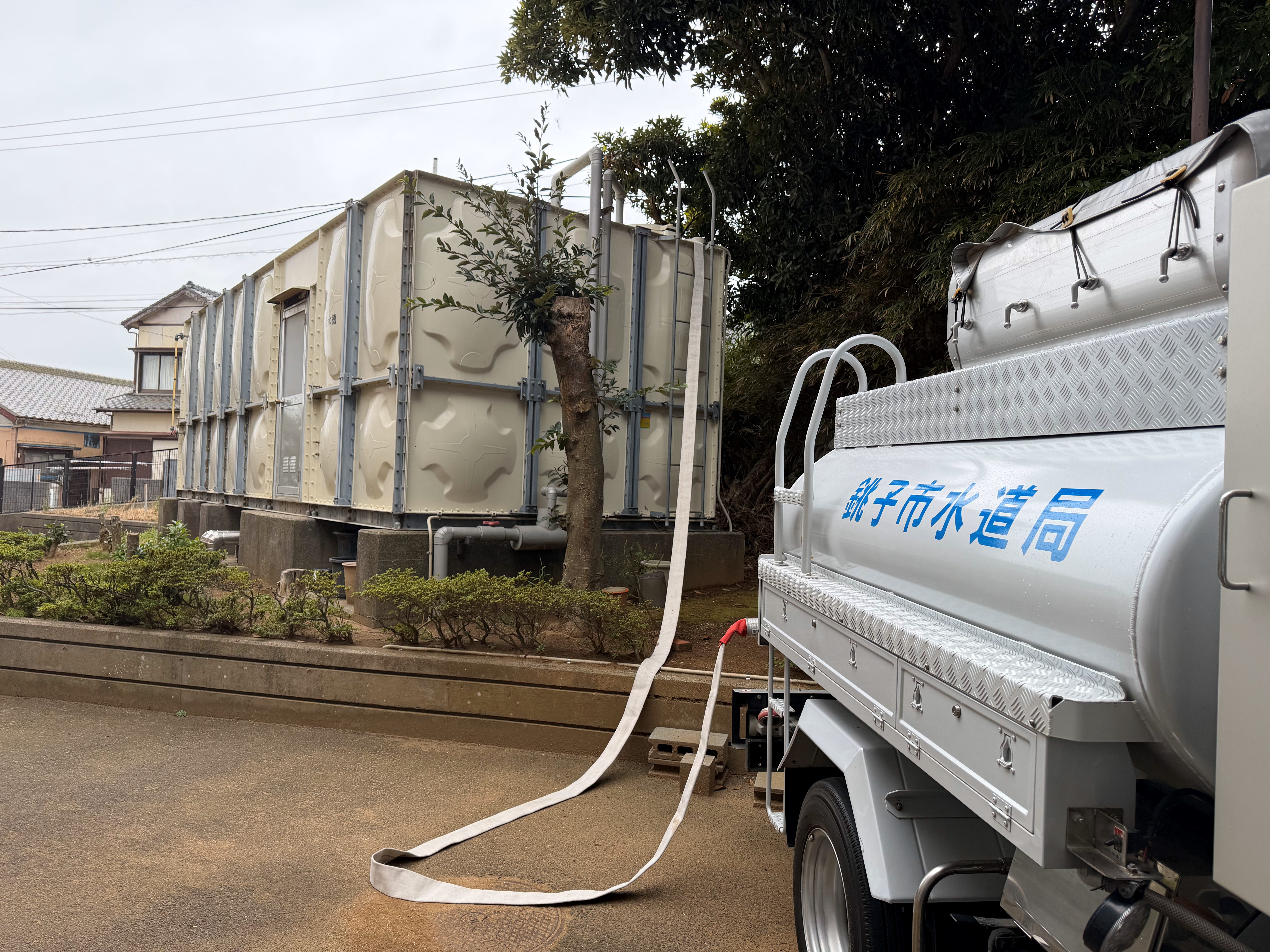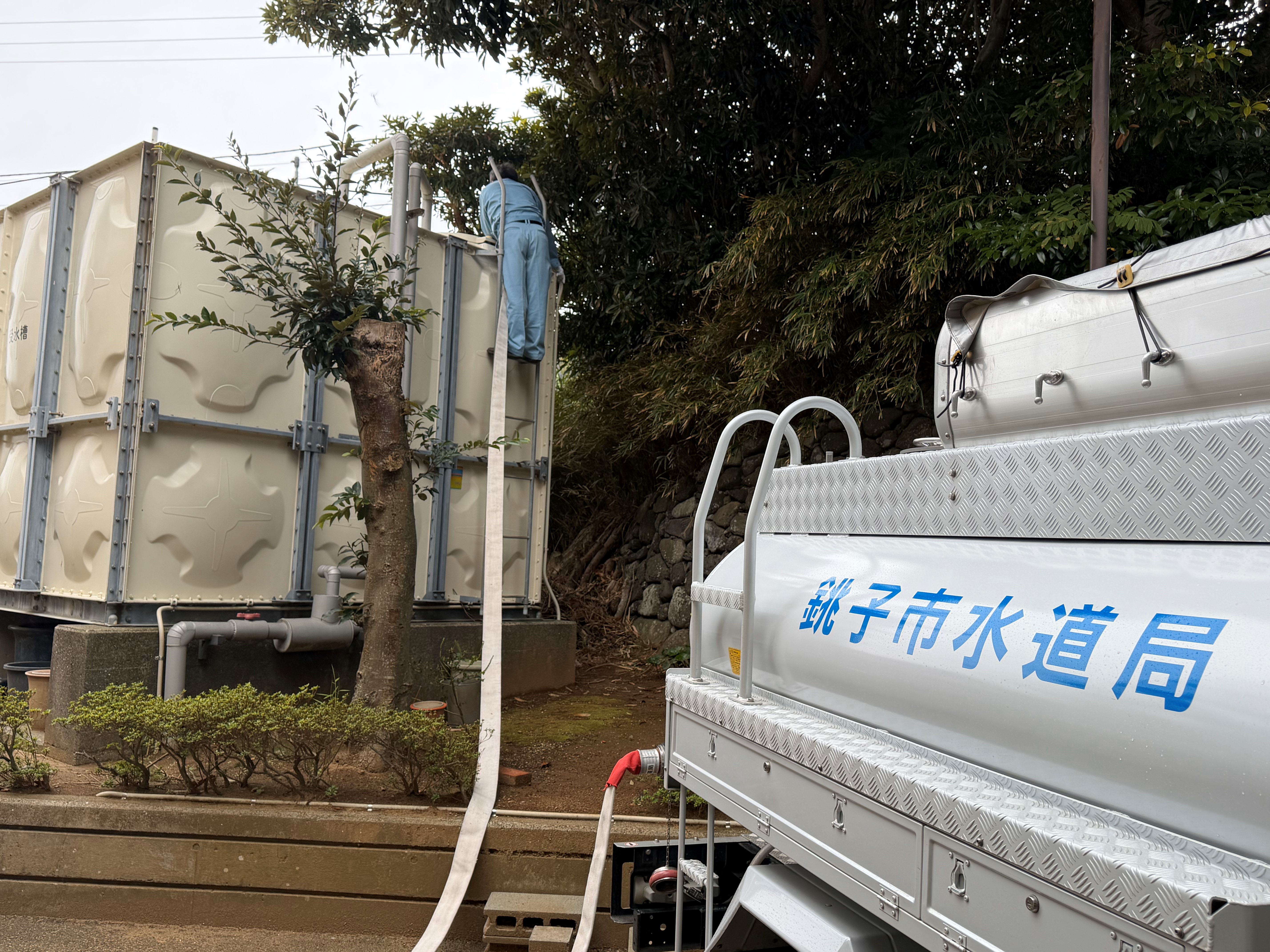 銚子市で震度4以上の地震が発生したとき、市内の各配水場(水道タンク)において緊急遮断弁(安全装置)が自動的に作動し、一時的に各配水場からご家庭への送水が停止する場合があります。