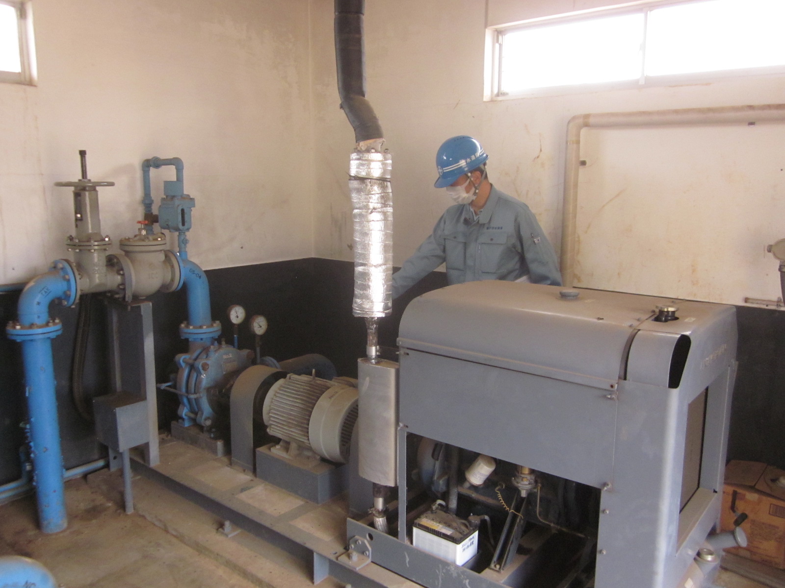 大規模地震による基幹管路での漏水発生及び増圧ポンプ所の停電による停止を想定し、銚子市水道局防災訓練を実施しました。