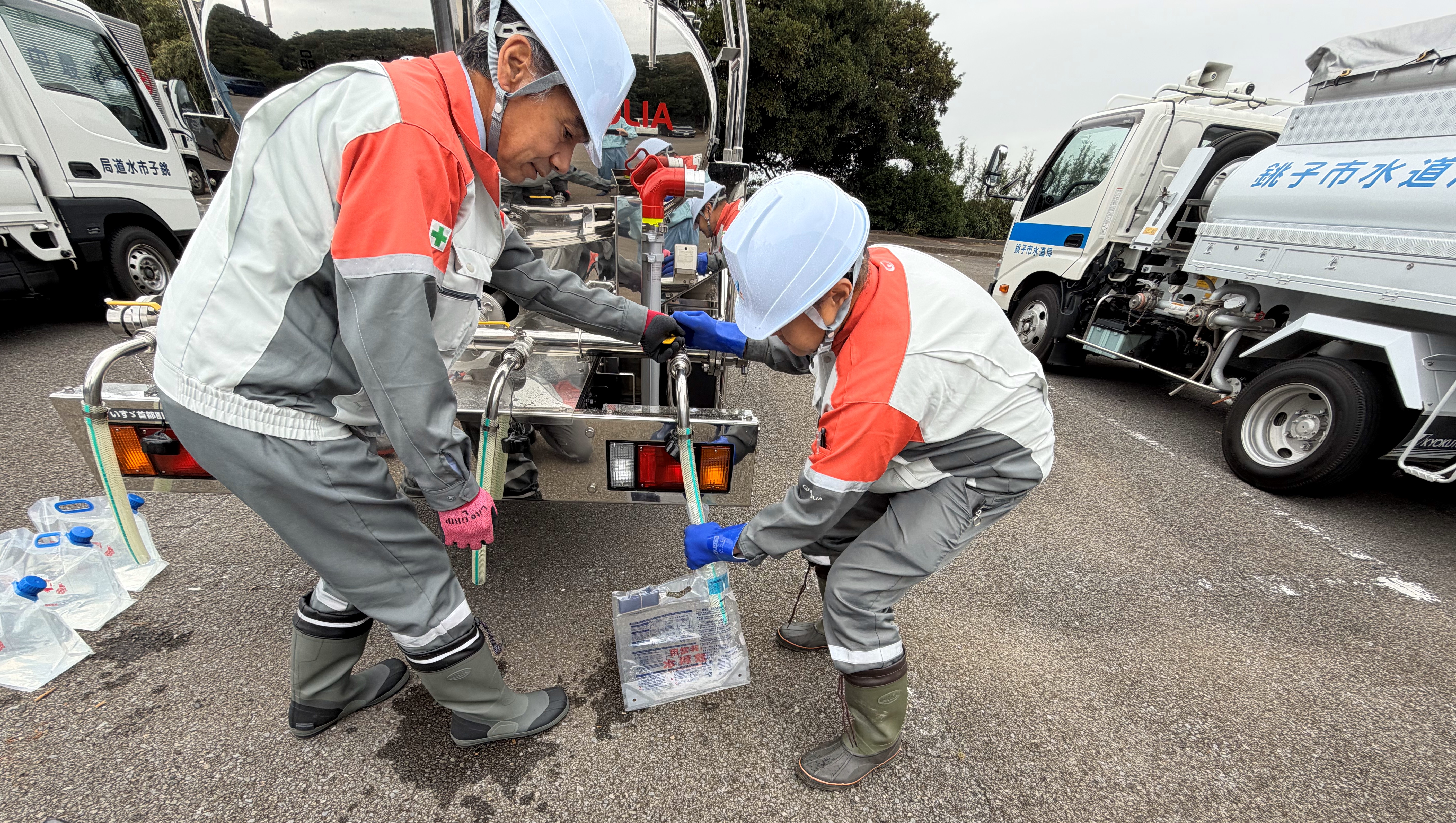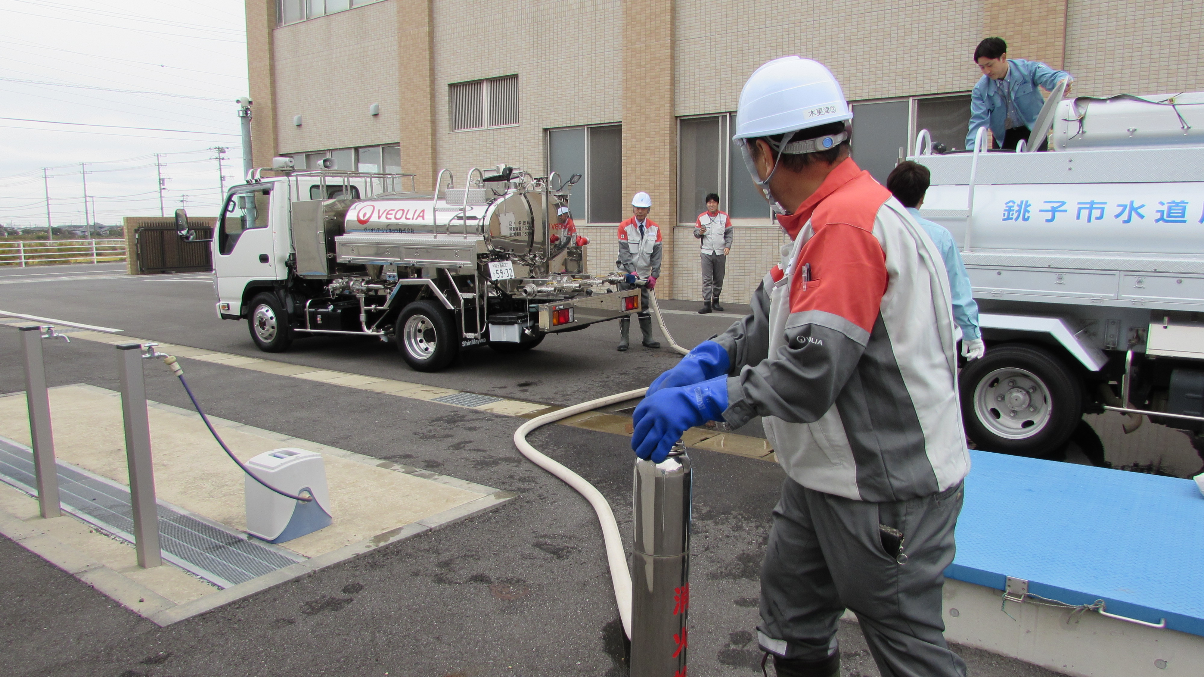今回の訓練には、応援協定を締結しているヴェオリア・ジェネッツ株式会社関東支店及び本城浄水場の運転管理を行っている株式会社水機テクノスも参加しました。